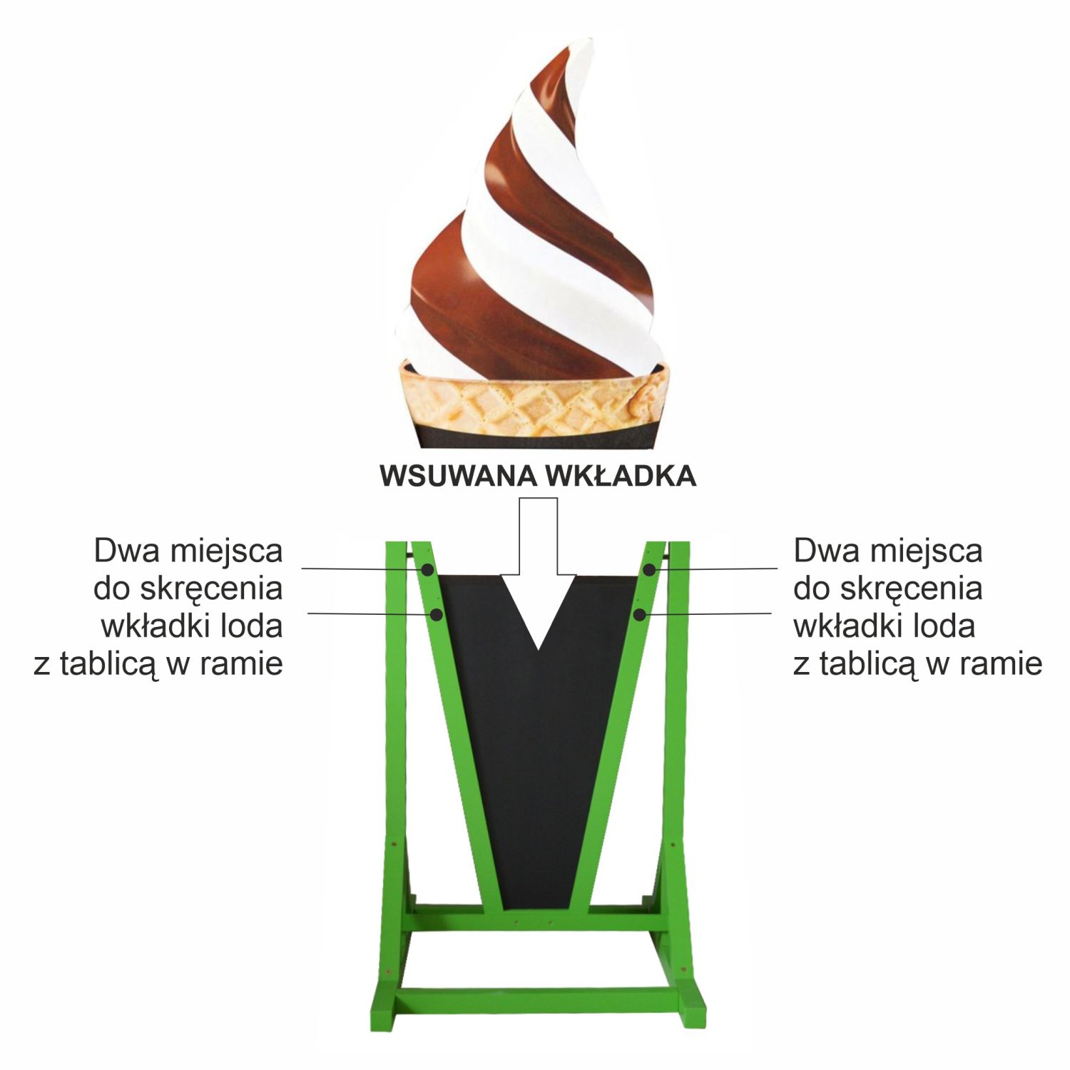 Dwustronny - wodoodporny potykacz drewniany z tablicą kredową LODY WŁOSKIE - 169x62cm rama zielona