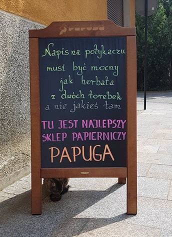 Potykacz reklamowy do sklepu dla plastyków PAPUGA Krosno